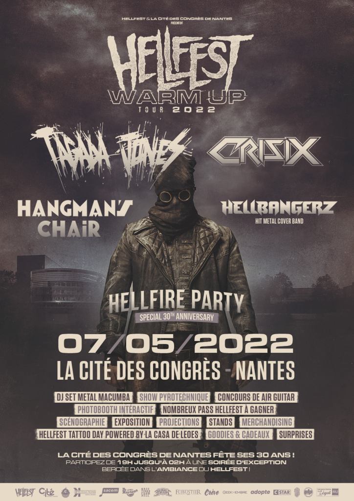 Après deux années de disette en matière de concerts, les choses sérieuses reprenaient pour la team No Name Radio, avec le show du Hellfest Warm Up Tour 2022 à la Cité des Congrès de Nantes, en ce Samedi 7 Mai 2022. Cette soirée, était la dernière date de la tournée préparatoire de la 15e édition de notre festival adoré. Commencée officiellement le 20 Avril, elle a traversé l’hexagone en passant par dix-huit villes dont Rennes, Paris, Lyon, Nancy, Bordeaux, Lens pour se terminer à Nantes.