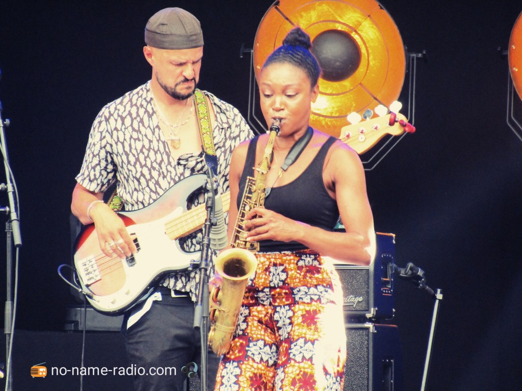 C’est sous un ciel des plus douteux que la team NNR arrive à Niort, en ce Jeudi 27 Juin. Le temps de récupérer nos pass et de faire un tour dans les allées du village du festival, que la première partie commence sur la grande scène, avec la saxophoniste Camilla George. Devant un parterre bondé, la native d’Eket (Niger), ressuscite à travers sa musique l’âme de John Coltrane, le son cuivré du sax y étant grandement pour quelque chose.
