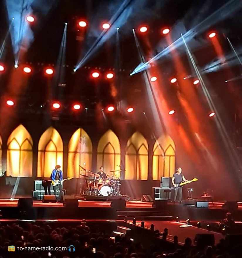 Le son d’ensemble est impeccable, les lignes musicales de chaque instrument sont parfaitement bien définies, l’interprétation est sans aucune faille, l’affaire est plus que rodée. On a vraiment l’impression d’écouter les singles de l’englishman en concert, comme si on était à la maison. En comparaison, j’ai toujours ressentit la même chose en écoutant le superbe « Delicate Sound Of Thunder » de Pink Floyd. Un album studio joué en live. Chaque note à sa place, jouée au millimètre près. La suite des festivités ne fera que conforter cette impression, « Fields of Gold/Driven To Tears/Can’t Stand Losing You » mixé avec le pseudo instrumental « Reggatta De Blanc », « I’m Mad About You », et le reggae emblématique de « Walking On The Moon ».