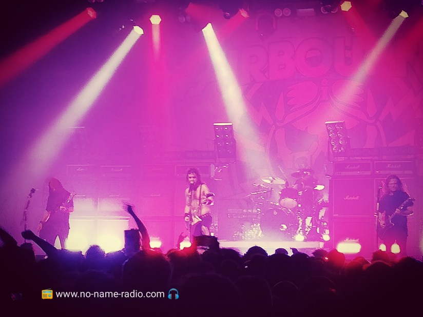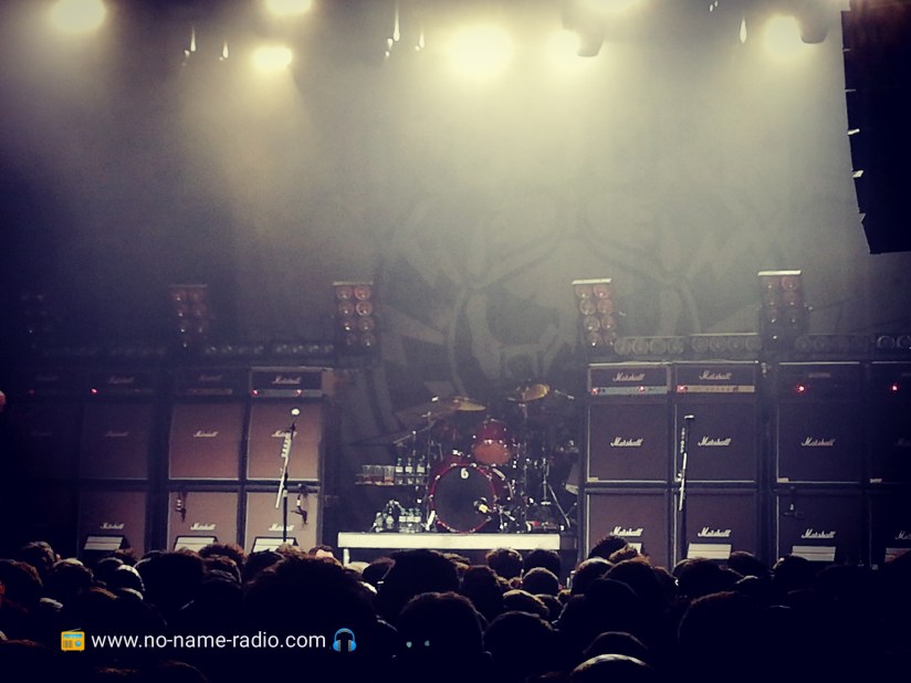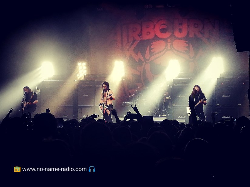 Le temps que toute la clique de roadies s’agite on stage pour préparer le matos d’Airbourne, les enceintes diffusent comme musique de fond une véritable compilation des 80’s pas piquée des vers avec Twisted Sister, Motörhead, Saxon, Iron Maiden, ZZ Top, Ted Nugent et Metallica. Une playlist au poil qui ne présage que du bon. Et c’est ce qui allait nous arriver quelques minutes plus tard…