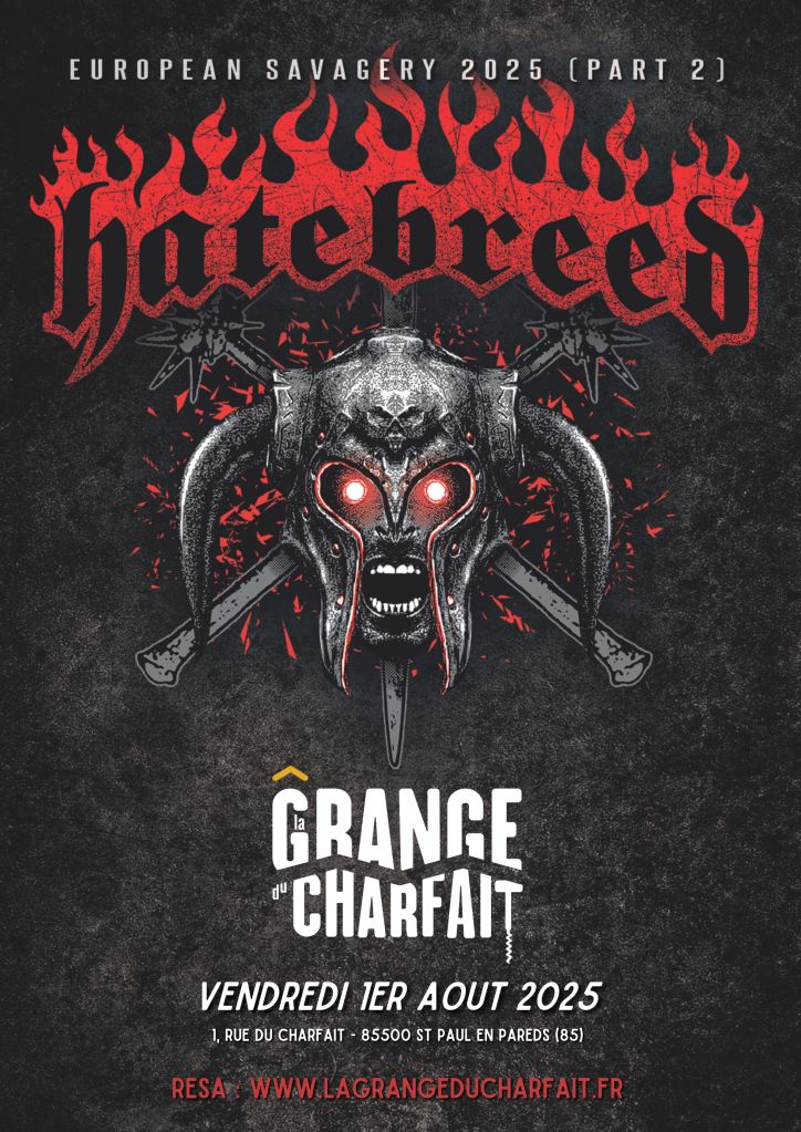 La nouvelle a fait l’effet d’une bombe lors de son annonce. La seconde partie de la tournée d’Hatebreed, « European Savagery 2025 », fera escale à La Grange du Charfait de St Paul-en-Pareds en Vendée, Vendredi 1er Août ! On ne pouvait pas passer à côté de cet évènement, et nous avons des places à vous faire gagner pour vous remuer les lombaires dans le pit le jour J !