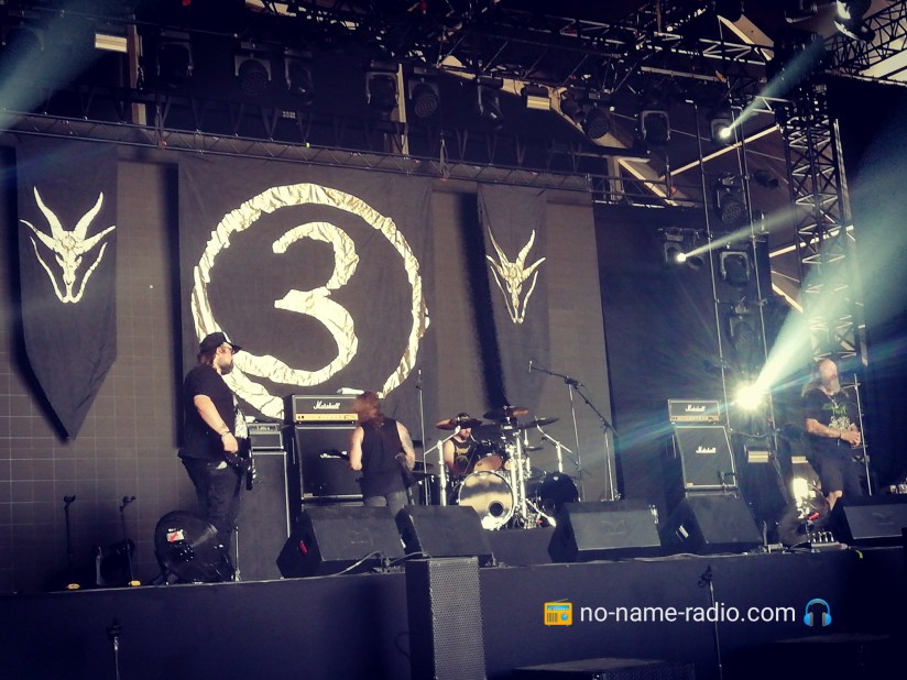 Le trio infernal Freak Kitchen foule ensuite les planches de la M2, sous un soleil de plomb, ce qui n’empêche pas son virtuose de guitariste, Mattias Eklundh, de se produire avec un bonnet et des manches longues ! Le set est sympa à regarder, sans surprises, Mattias est toujours aussi (trop ?) bavard, mais rien que d’écouter une nouvelle fois des brûlots comme « Propaganda Pie », ça donne le sourire et surtout l’envie de brancher mes guitares une fois rentré à la maison.