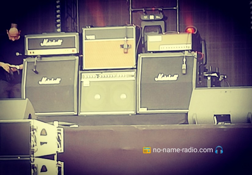 Du coup, mon désespoir de découvrir une formation récente musicalement intéressante atteint son apogée, quand le miracle attendu monte sur la Mainstage 1, The Cult ! A 18h35, le Hellfest devint un Sonic Temple (titre de leur génialissime album de 1989) à la gloire de la formation emblématique du gothic hard-rock des 80’s/90’s. Quel show ! Billy Duffy demeure un as du riff pur et dur à tout jamais, au son de guitare indémodable et inimitable. En tant que guitariste, le rig de Mr Duffy retient bien évidemment mon attention : têtes d’amplis Marshall et Friedman, baffles 4×12 Marshall, amplis combos Vox AC 30 et Roland Jazz Chorus de la grande époque. Sans oublier ses fameuses Gretsch White Falcon blanche et Gibson Les Paul Custom de couleur crème. Un vrai régal pour les yeux et les oreilles, la trace des grands quoi !
