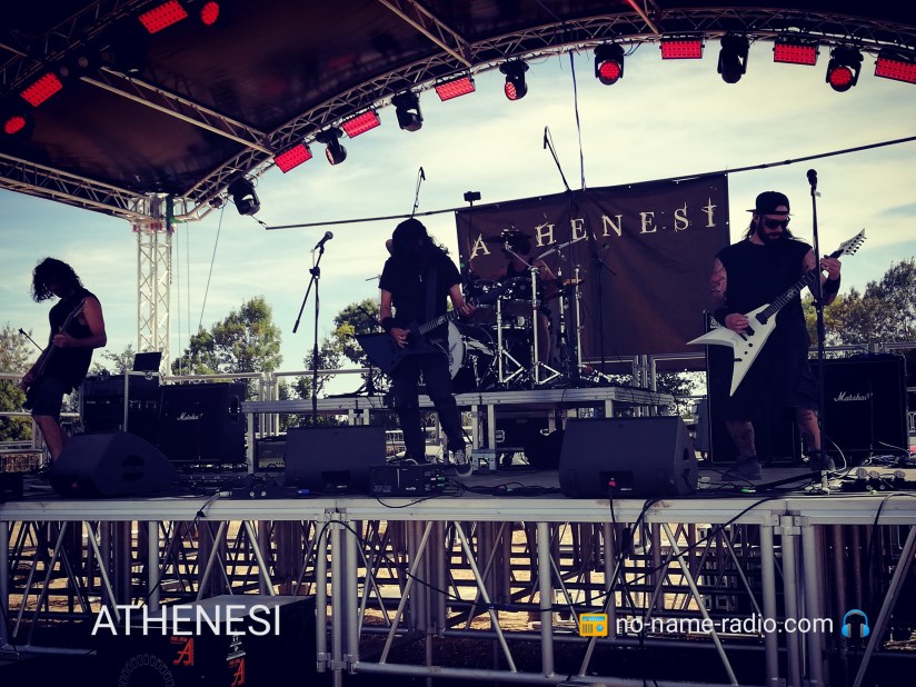 Les Italiens d’Athenesi prennent ensuite le relais, dans un registre plus orienté modern-metal. Occupé à prendre des photos des décors du site, je n’ai pas vu les premières minutes du show, mais d’après ce j’ai compris, le soliste commença son set en cassant une des cordes de sa guitare. Pas de bol. Le groupe continua de jouer en bon professionnel, et une fois l’incident résolu, le quartet poursuivi sa presta avec brio.