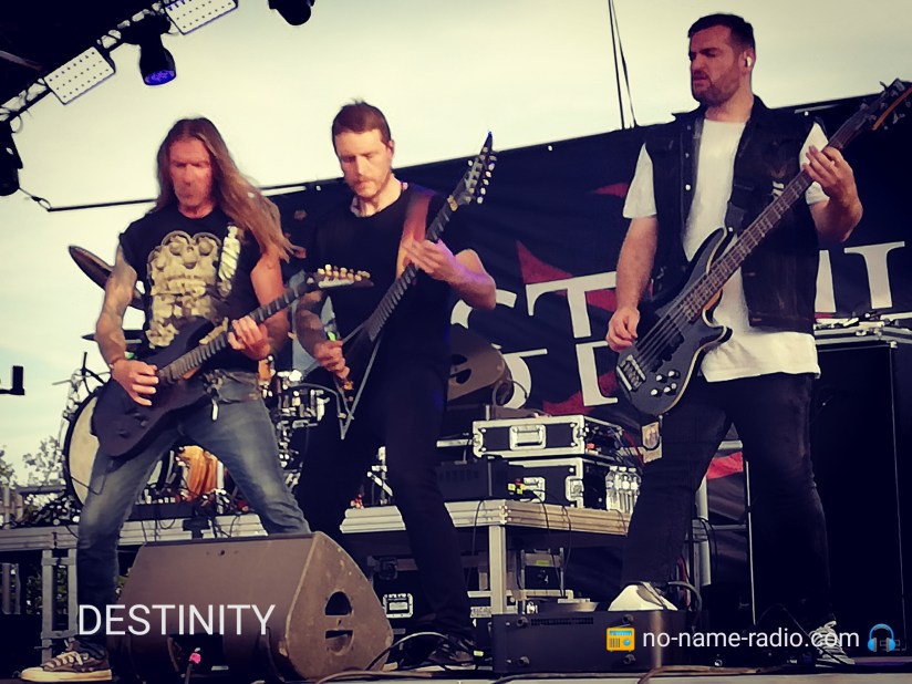 Après les différents brins de causettes passés avec les groupes et mes collègues des différents médias, retour dans le pit pour la fin du set des Bisontins de Carcariass, suivi de Destinity, qui pendant pratiquement une heure, offrira à l’assemblée un show intense, puissant, et redoutablement efficace.