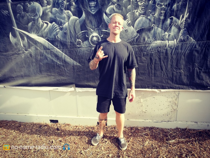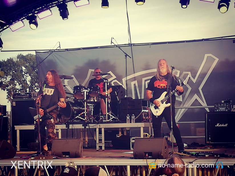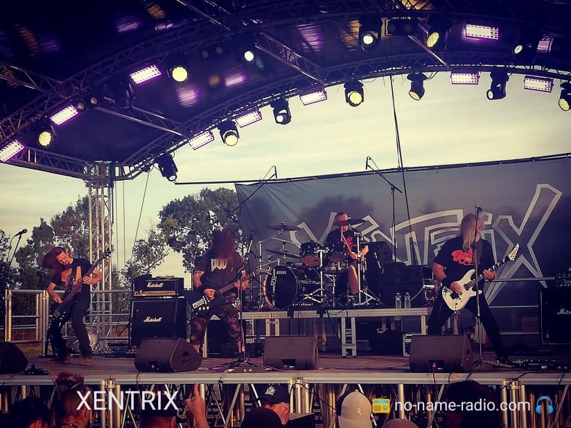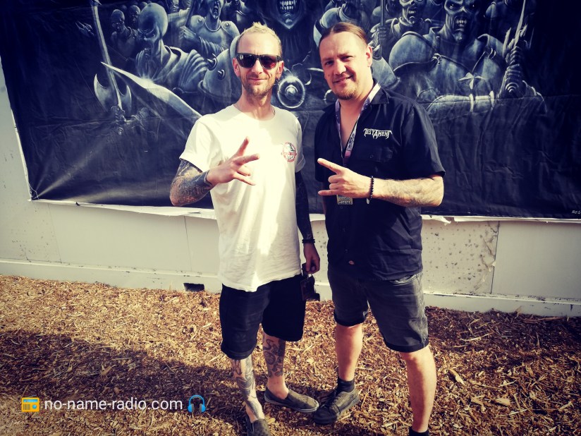 Le samedi pointe le bout de ses riffs, je charge la No Name mobile, et direction Champtoceaux ! J’arrive sur place en début d’après-midi, le temps de me garer, me badigeonner de crème solaire, car l’envie de griller façon barbeuk n’était pas au menu, d’ensuite récupérer mon pass, que je retrouve mes confrères Jérôme et Stéphane de l’émission Metal Zone de Radio Oxygène. Les deux acolytes étaient chargés de la relation presse/groupes pour les interviews du jour, et de mon côté un planning de taille m’attendait, avec au programme, Xentrix, Onslaught, Destinity. En un mot, impeccable !